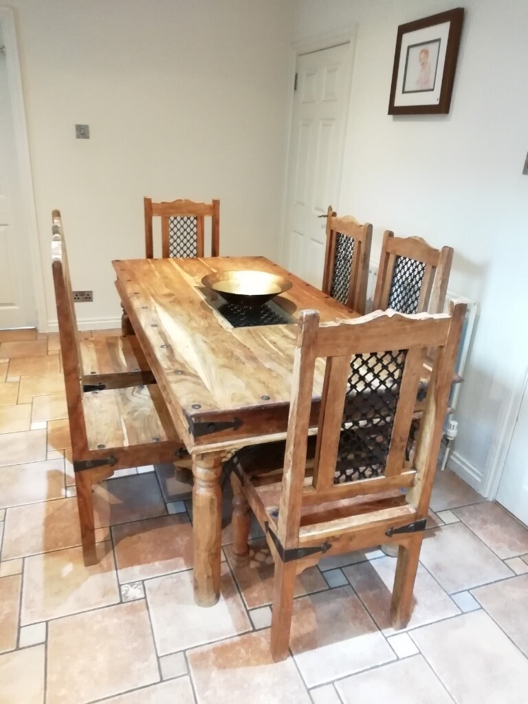 Cube Oak 160 cm Dining Table and 6 Chairs | Quercus Living from www.quercusliving.co.uk From the latest styles of dining room tables to bar stools, ashley homestore combines the latest trends with technology to give you the very best for your home. By polywood (13) $ 1609 00. Chairs made of wood with neutral polyester upholstery. The chairs are constructed from wood and offer plum seating with a stunning high back design for comfort. The dining set features six chairs and one dining table. Accented with a traditional touch, the dining set enamelled with a distressed waxed pine finish. Set (lazy susan table & 6 side chairs), created for macy's. Sommerford dining table and 6 chairs set.